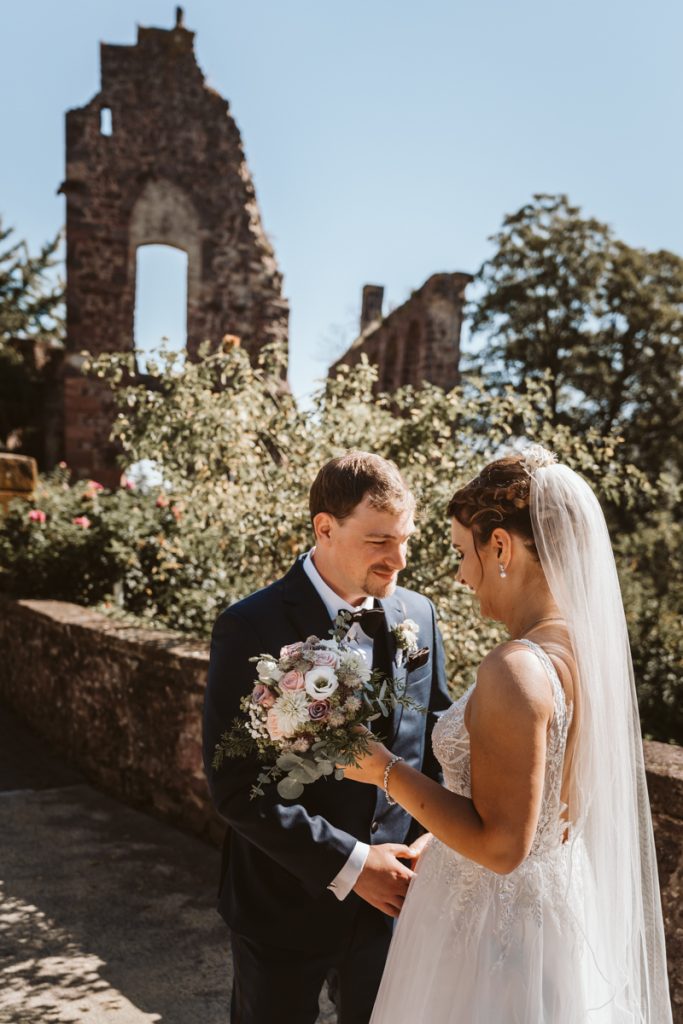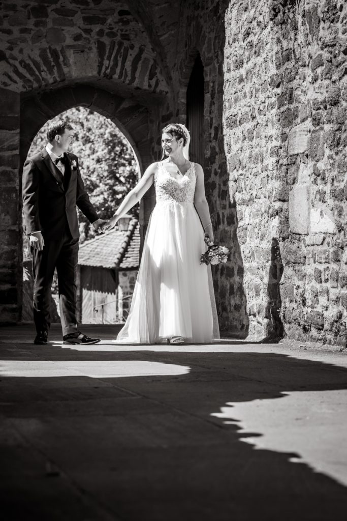 Eine internationale Hochzeit mit Gästen, die eine sehr weite Anreise aus den USA hatten. Christina war ein Jahr in Seattle und hat ihr Herz an die USA verloren. James hatte sie jedoch erst über Umwege danach kennengelernt und schnell lieben gelernt. Trotz der großen Entfernung und der dadurch wenigen persönlichen Zeit war schnell klar, dass sie „Ja“ zu sich und ihrer Liebe auf Distanz sagen möchten. Geheiratet wurde auf Burg Dreieichenhain. Dreieichenhain ist absolut für eine standesamtliche Trauung zu empfehlen, eine super schöne Location, in der man sich das „Ja“ für die Liebe und das Leben gibt.