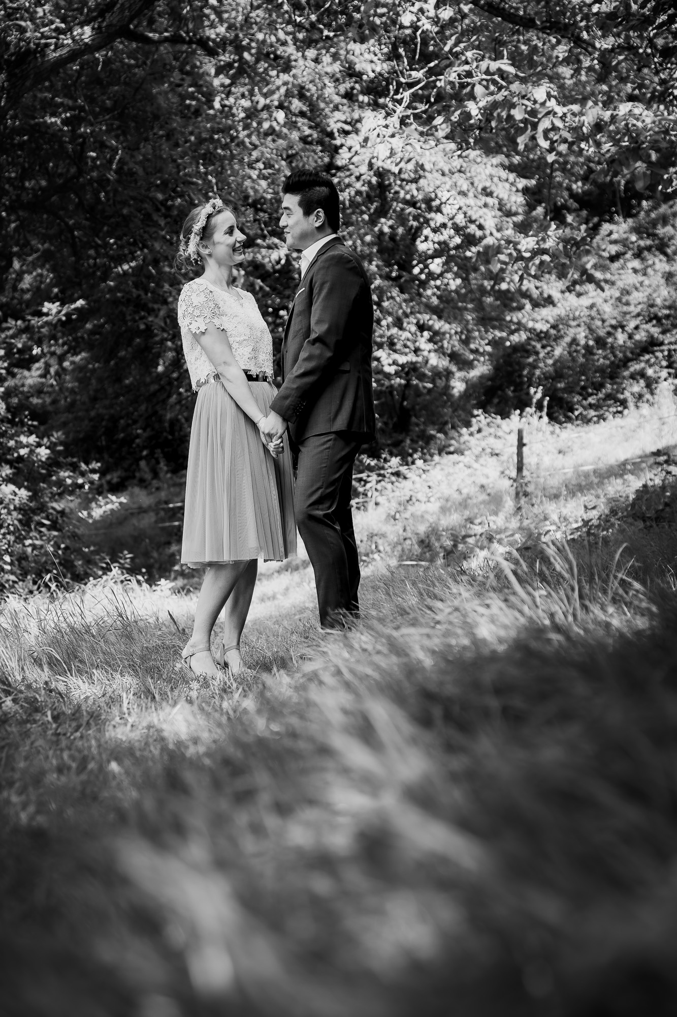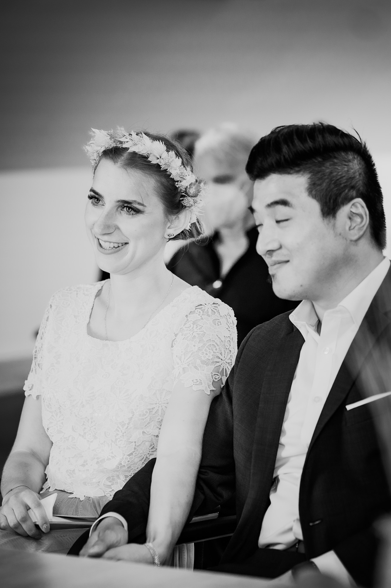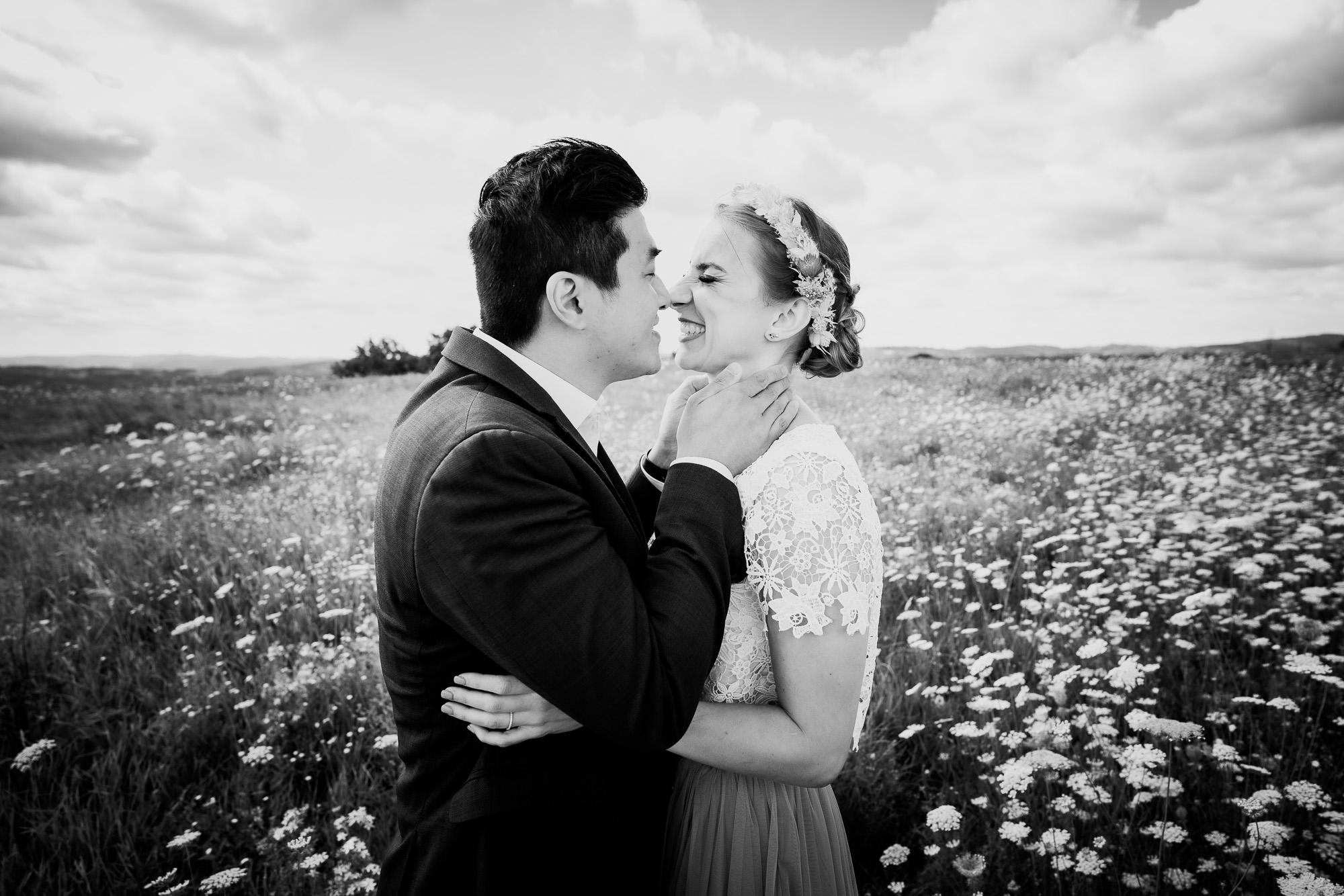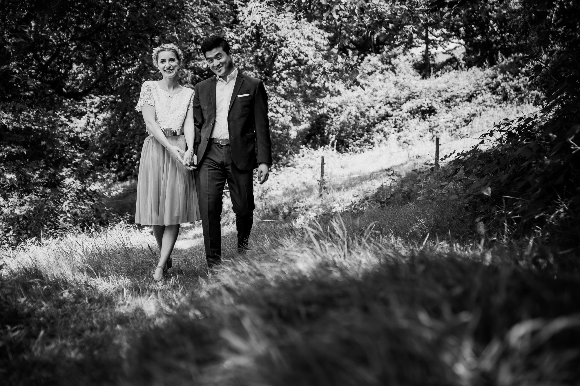 Ja, bei Miriam & Daghim stelle ich bewusst einfach mal nur die Bilder in schwarz/weiß ein. Hier möchte ich zeigen wie schwarz/weiße Bilder den Blick rein auf die emotionen lecken und nichts vom reinen Motiv ablenkt. Die beiden hatten so eine tolle, emotionale Hochzeit die ich selten erlebt habe. Was zweimal ein „Ja“ für Emotionen hervorbringen kann ist einfach unglaublich. Seht selbst und habt Freude dabei, die Liebe, das Glück und das Grinsen der beiden anzuschauen.