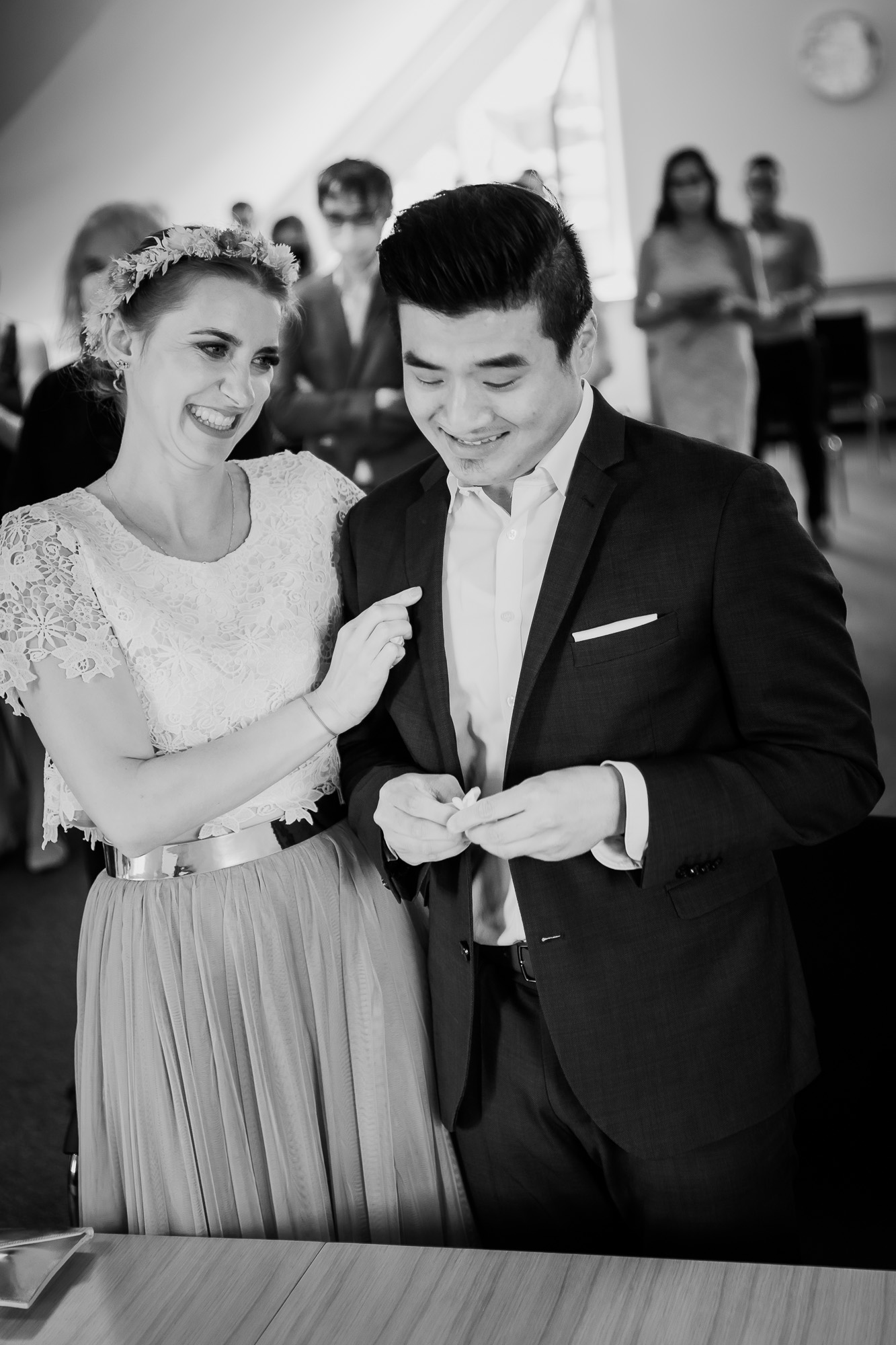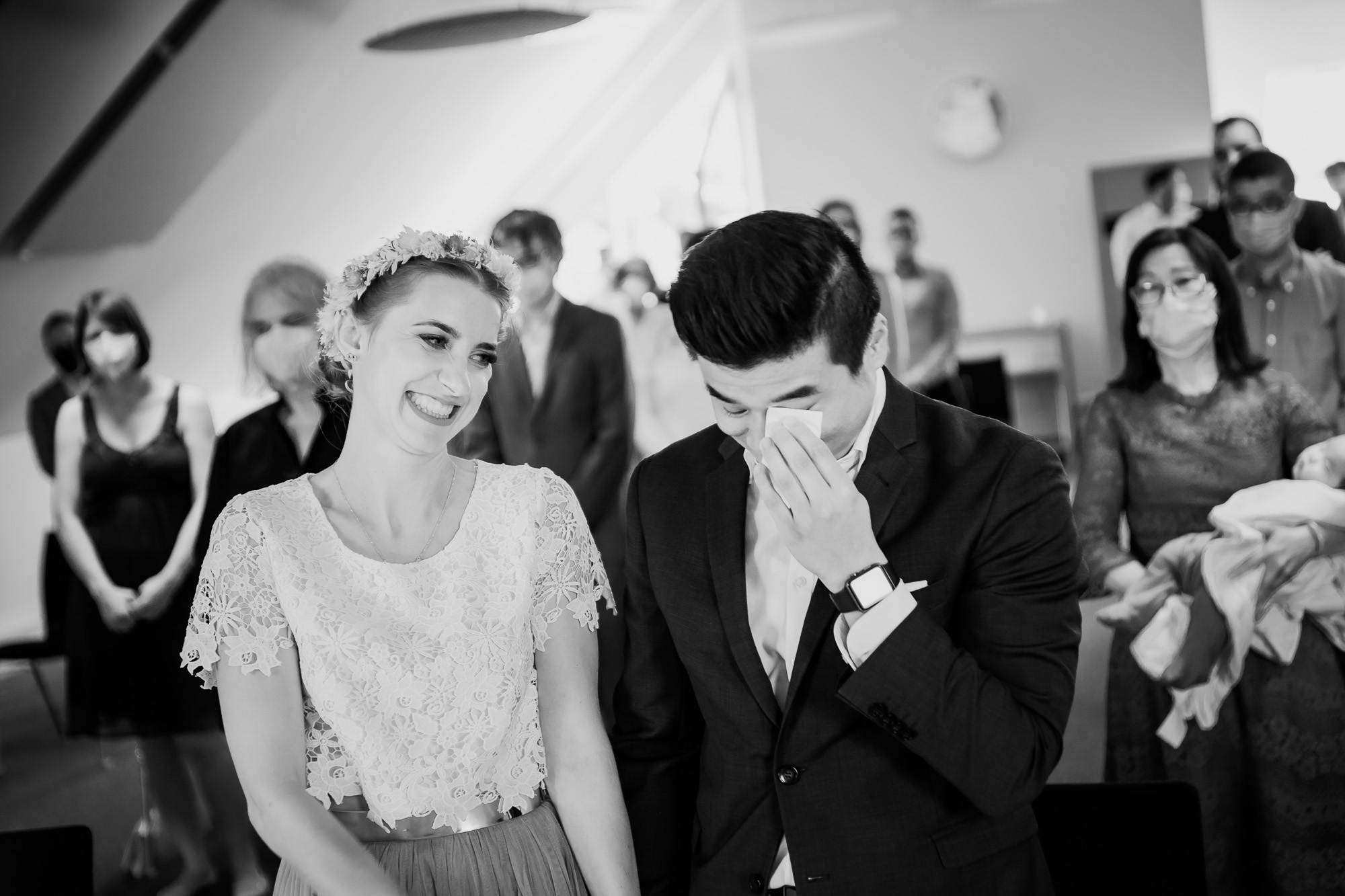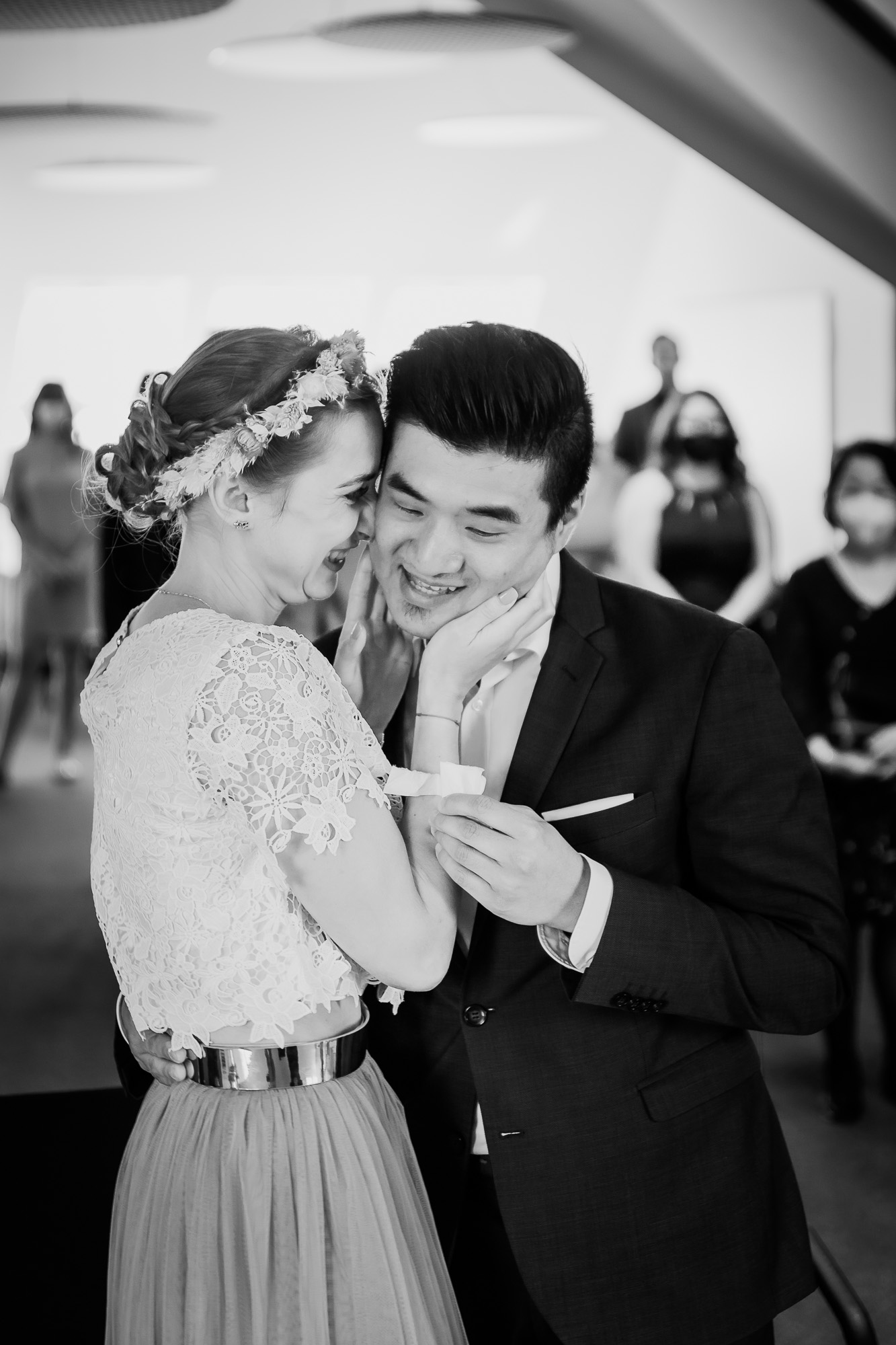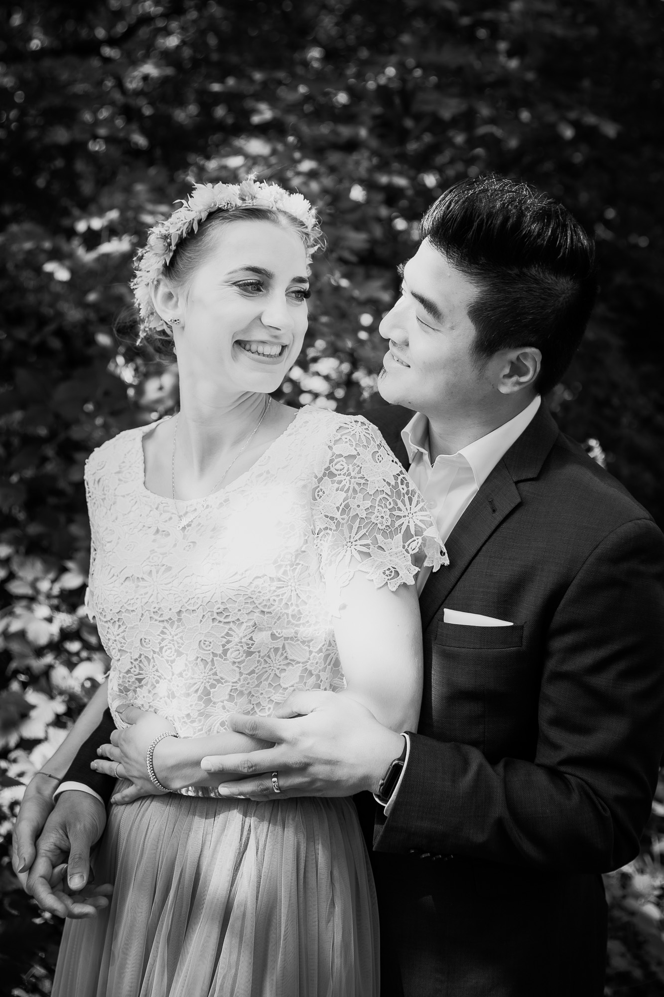 Ja, bei Miriam & Daghim stelle ich bewusst einfach mal nur die Bilder in schwarz/weiß ein. Hier möchte ich zeigen wie schwarz/weiße Bilder den Blick rein auf die emotionen lecken und nichts vom reinen Motiv ablenkt. Die beiden hatten so eine tolle, emotionale Hochzeit die ich selten erlebt habe. Was zweimal ein „Ja“ für Emotionen hervorbringen kann ist einfach unglaublich. Seht selbst und habt Freude dabei, die Liebe, das Glück und das Grinsen der beiden anzuschauen.