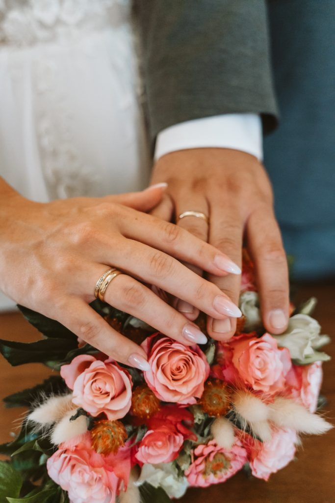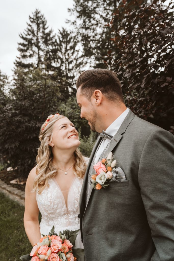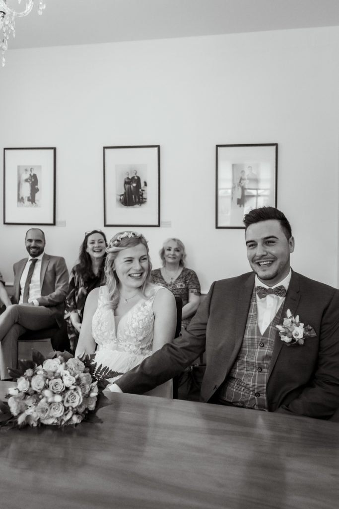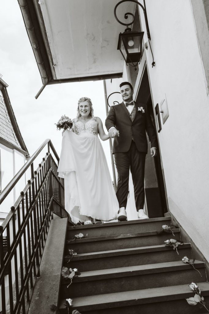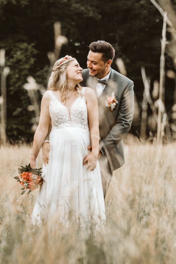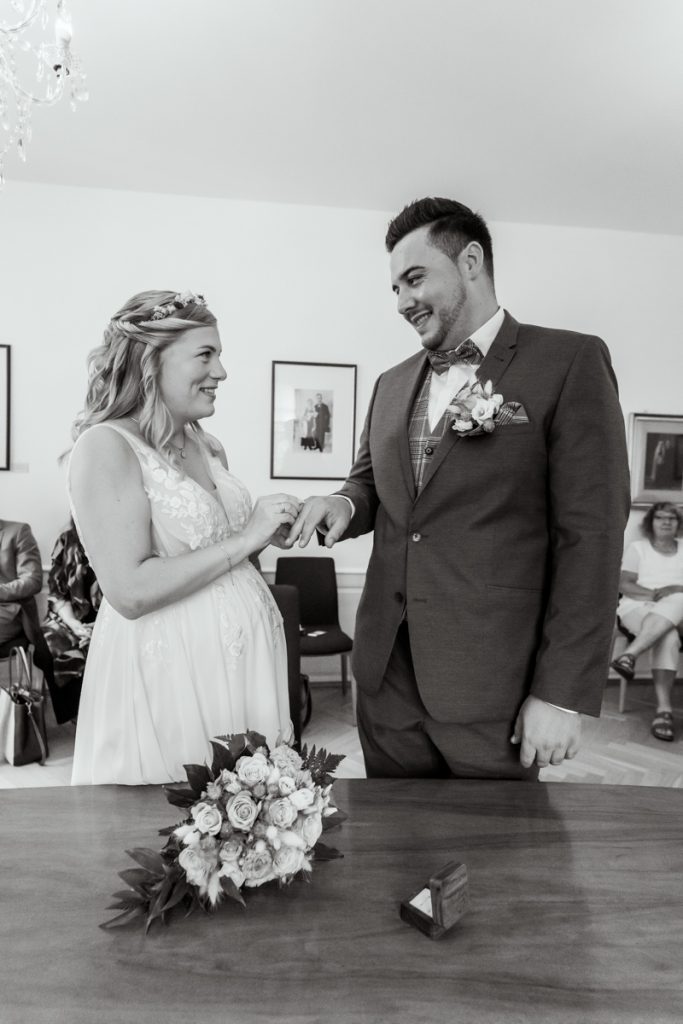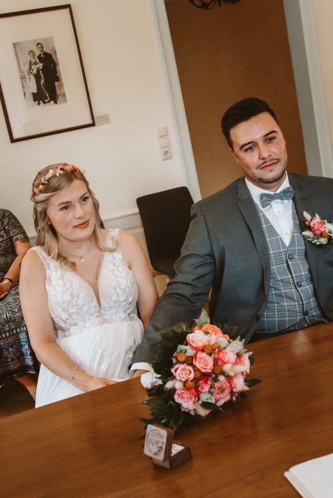 Die beiden – oder besser gesagt die drei oder vier (Bruno, ein wunderbarer Golden Retriever, und Ihr ungeborenes Kind) – durfte ich während ihrer standesamtlichen Trauung in Wehen (Taunus) begleiten.